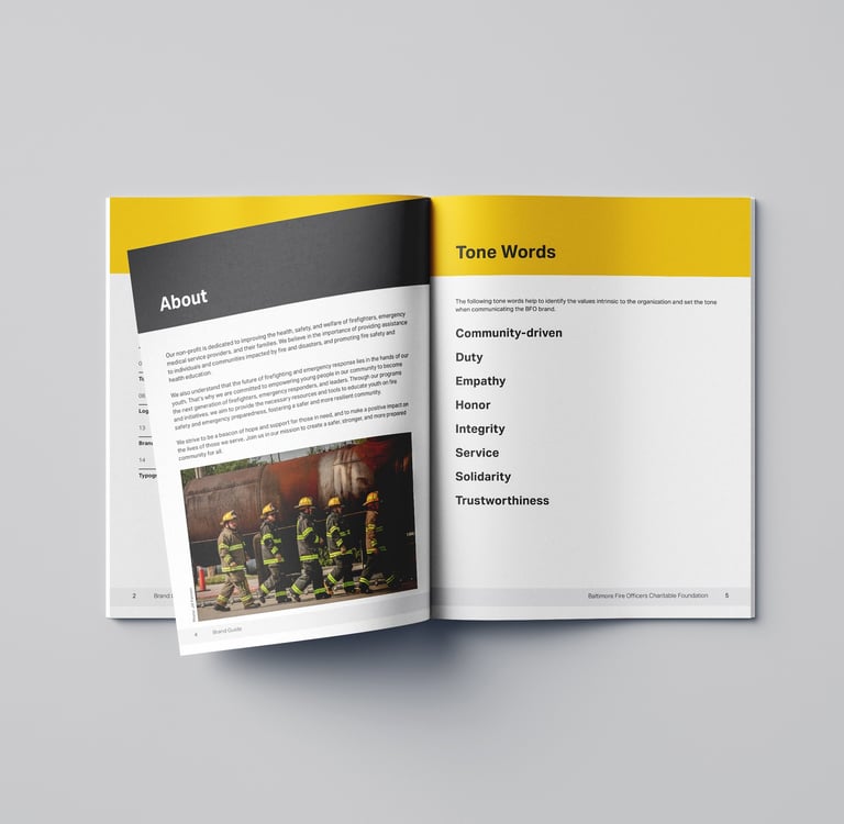 In 2023, the Baltimore Fire Officers Union approached me to help them develop a logo and brand identity to accompany a new non-profit arm of the organization: the Baltimore Fire Officers Charitable Foundation. It was a rewarding challenge to work on this project, and I think the final results fit the organization's needs very well and got a great response.