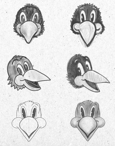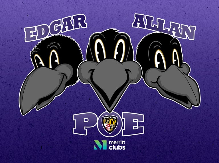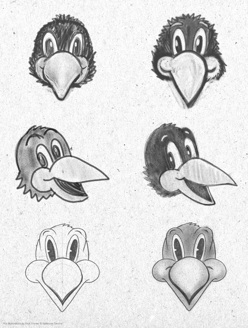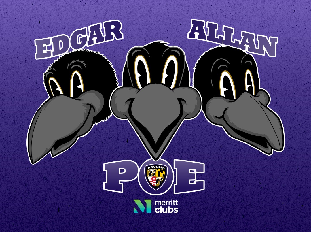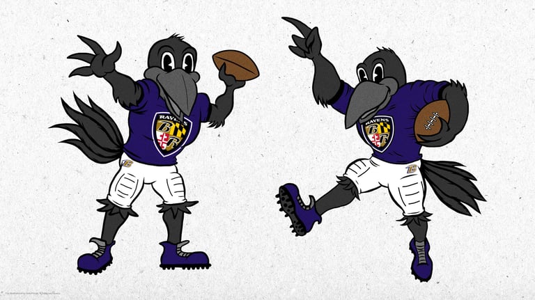 Poe is the official mascot of the Baltimore Ravens (along with his pals Edgar & Allan), and for star birds of this caliber, they must have show-stopping branding! Explore below: the logo development inspiration and sketches, the final mascots logos which feature original illustrations that I created paired with text & the Ravens shield, along with a few actual use cases & more illustrations.